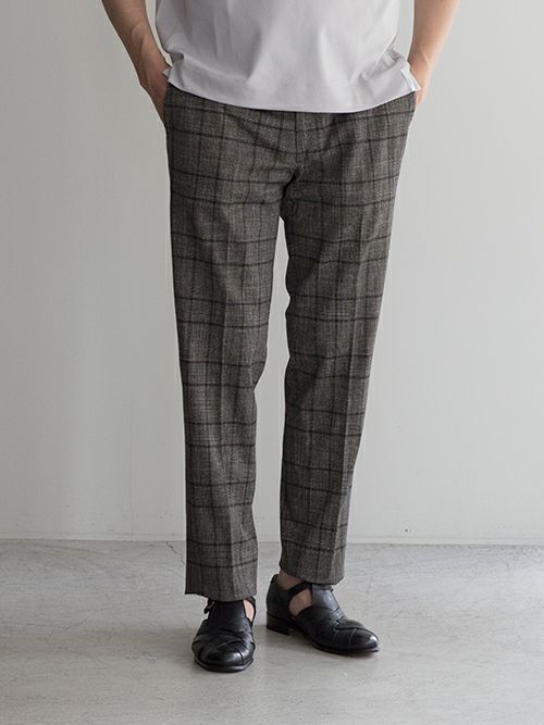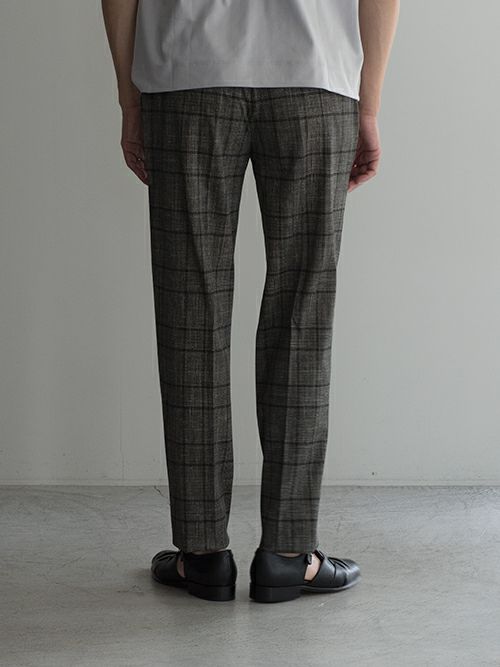 ノータックのすっきりとした腰回りで、膝下からはテーパードのかかるスマートなシルエットです。ストレッチが効いているので動きやすく、ストレスのない着用感も魅力的。