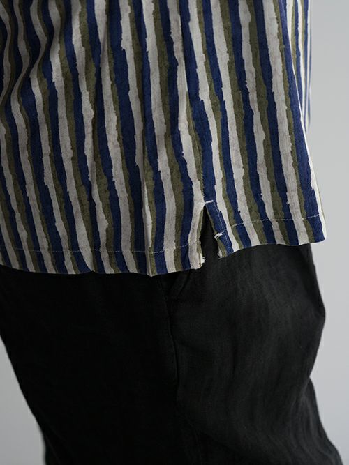 コーディネートのアクセントとなるストライプ柄も、落ち着いた色合いで上品さを損ないません。