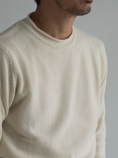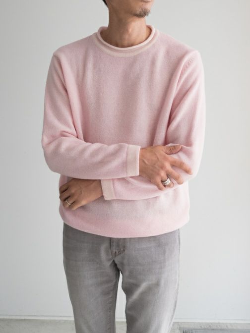 首元がロールネック仕様になっており、一枚での着用はもちろん、インナーとしてもスタイリングのアクセントになる一着です。