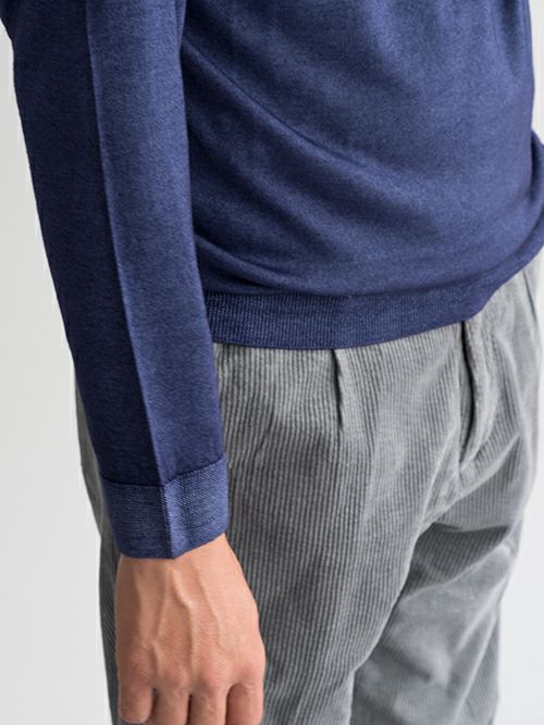 柔らかな肌触りと、製品染め特有の絶妙な色合いが魅力的な一着。勿論コーディネートの汎用性は高く、インナーとしてもスタイリングのアクセントになる一着です。