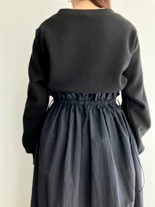 ウエストにギャザーを寄せてセパレートのようなデザイン。スカート部分はサイドでアジャストできるようになっているのでインナーを入れても十分なゆとりがあります。身体が泳ぐようなゆとりと素材感でコーディネートを楽しんでください。