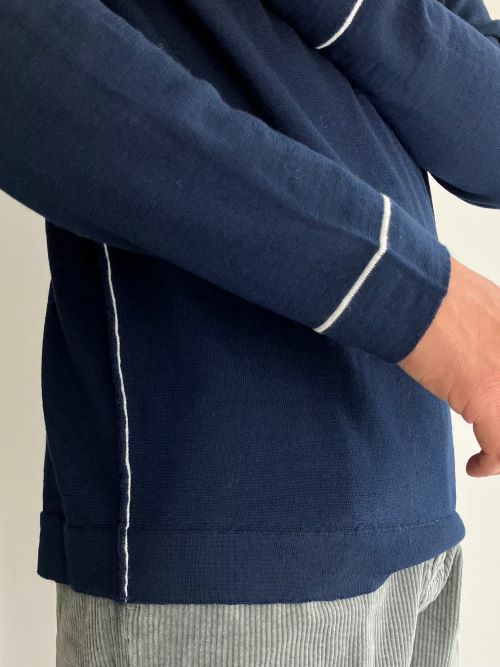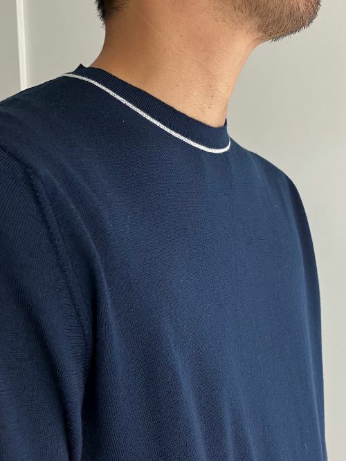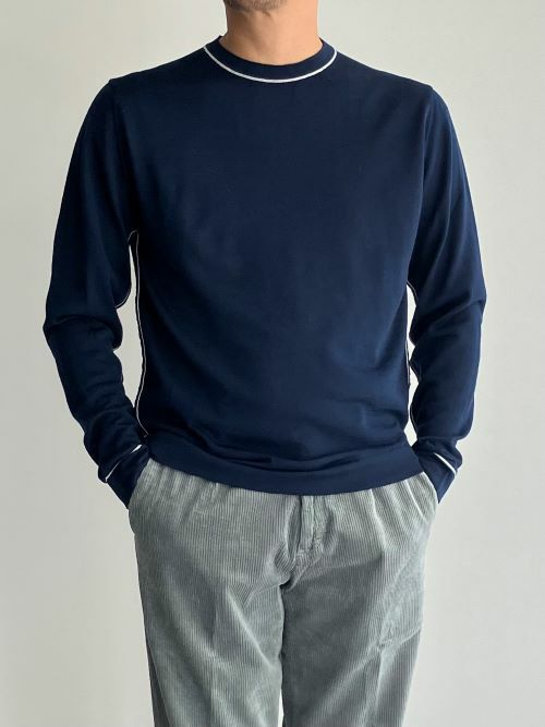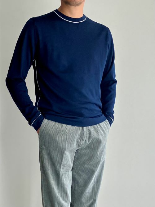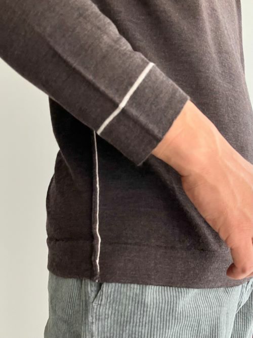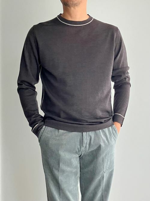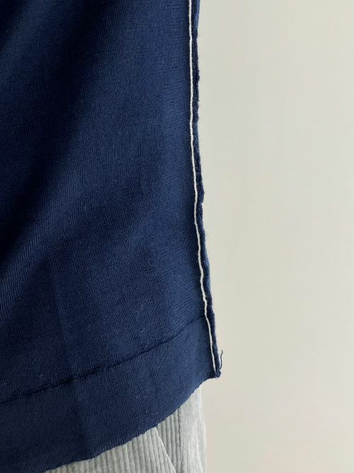 ステッチを敢えて際立たせたデザインが印象的で、一枚での着用から、インナーとしてもスタイリングのアクセントになる一着です。