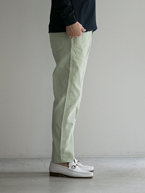 華やかでありながらも、色馴染みのよいペールトーンがコーディネートを作る上での汎用性を上げてくれるファイブポケットパンツ。ストレッチの効いたコットン生地を使用しており、軽やかな着用感でストレスのない仕上がりです。