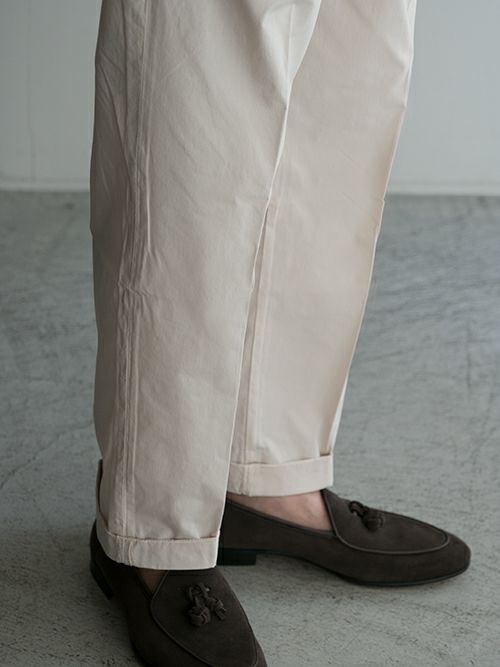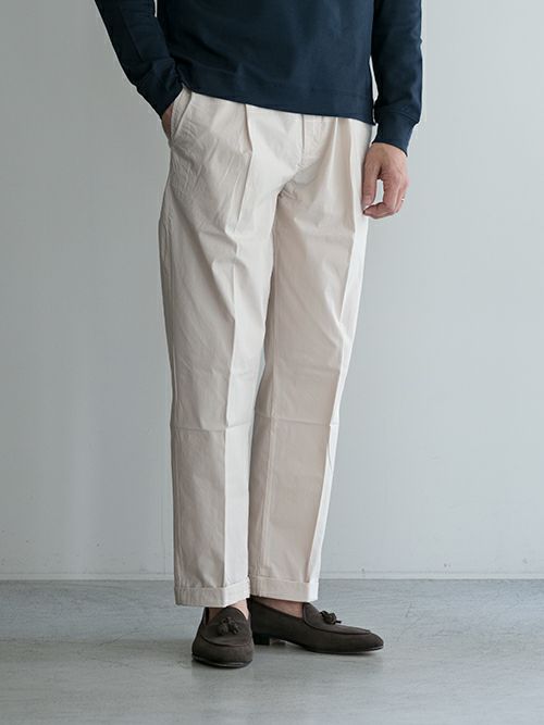 軽やかな生地感のコットンを使用したイージーパンツ「MIKEL」。春夏のコーディネートに適した一着です。