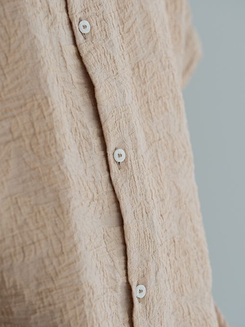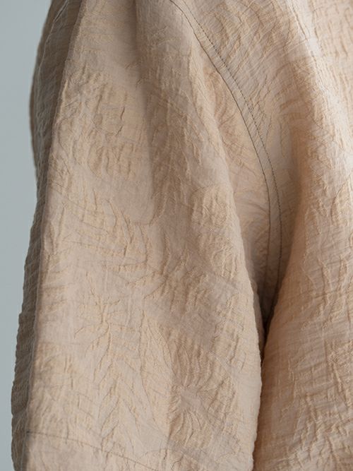 ゆとりのあるシルエットでリラックス感のあるオープンカラーシャツ。エンボス加工によって表現されたリーフ柄が魅力的です。デザイン性の高さもさることながら、肌触りの良いサラッとした生地感も魅力のひとつです。