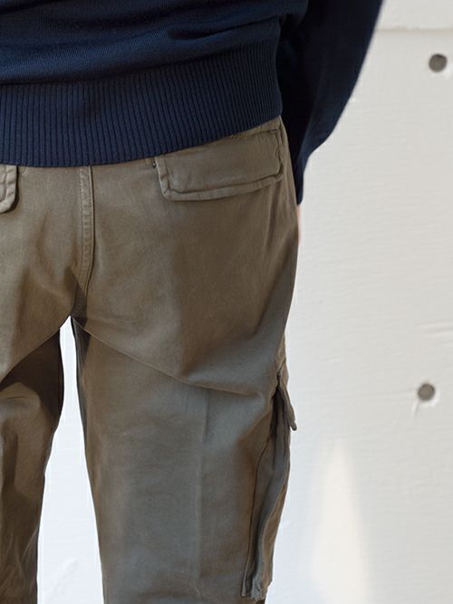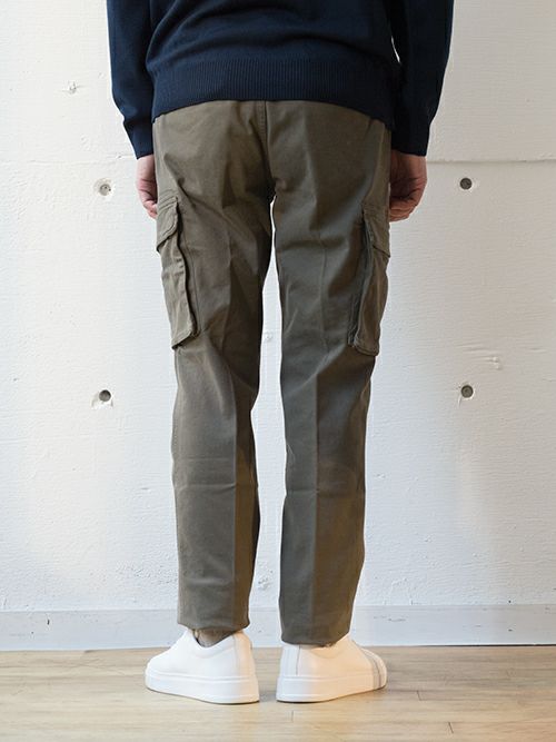 いわゆるドレスカーゴと言われるモデル AKIKO。ノータックで股上も比較的浅く、全体的に細めのテーパードシルエットです。
