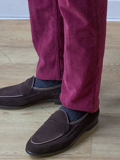 コットン×テンセルの細コール素材、個性的なボルドーカラーの一着です。