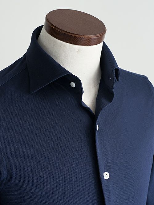 襟型は、クールビズのシーズンにノータイでも様になるホリゾンタルワイド。柔らかく伸びの良い生地感も魅力的な一着です。