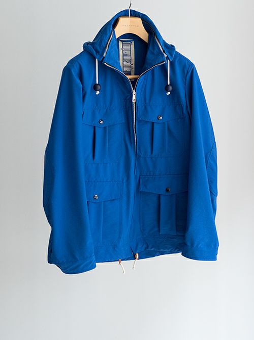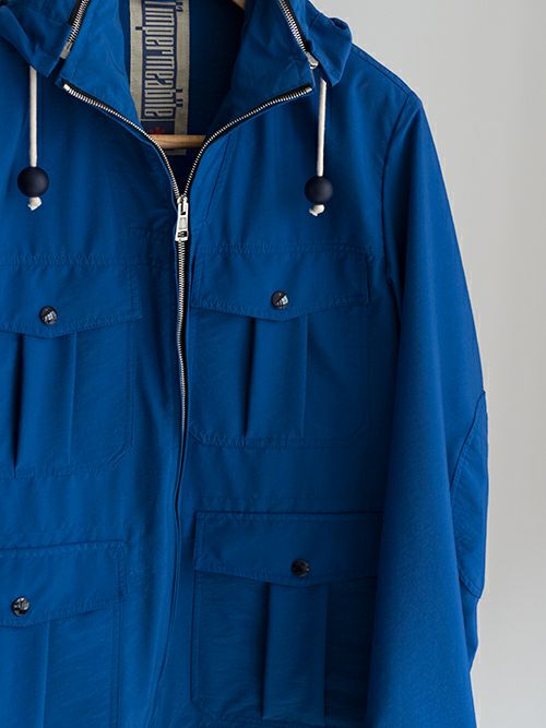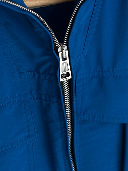 鮮やかなブルーが目を惹くミリタリーアウター。ナイロンとポリエステルの混生地で裏地は付いておらず、軽やかな羽織り心地です。