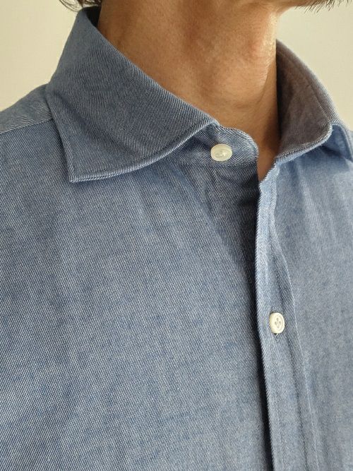 基本はジャケットにあうカジュアルシャツとして作り込んでおり、通常のドレスシャツの様に着丈は長くないので一枚でサラッと着て頂けます。