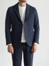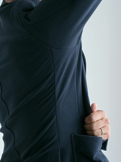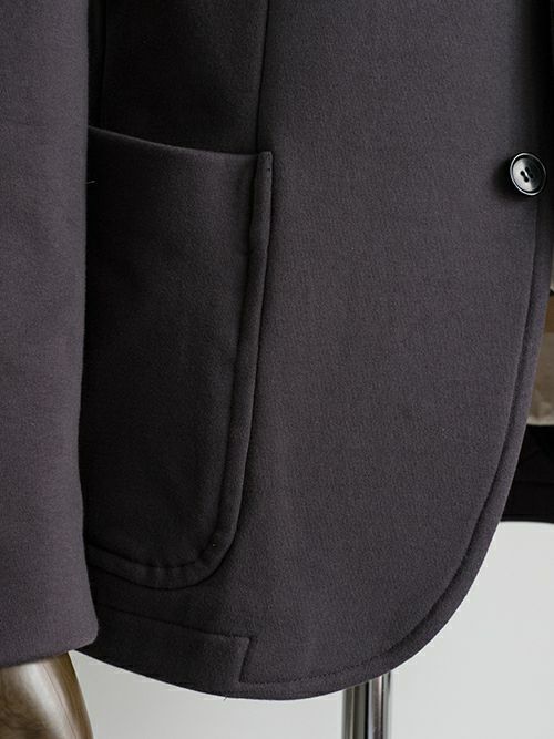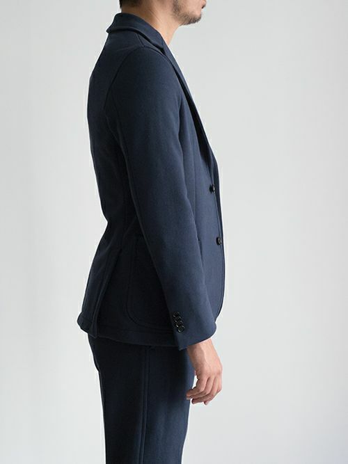 スウェット素材を使用したセットアップは数多くありますが、素材特性上、どうしても保形性に難があり、一日座り仕事をしていると肘や膝が抜けてしまってだらしなく見えてしまうなど、快適な素材であるが故のデメリットもありました。