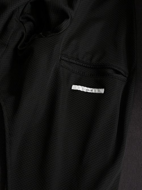Lequalのこちらのセットアップは先ず生地からオリジナルで和歌山のニッターに生産を依頼。中糸にポリウレタン糸を入れ込んだカバーリング糸を極力度詰めして編み立てることで、非常にキックバックの強い素材となっています。