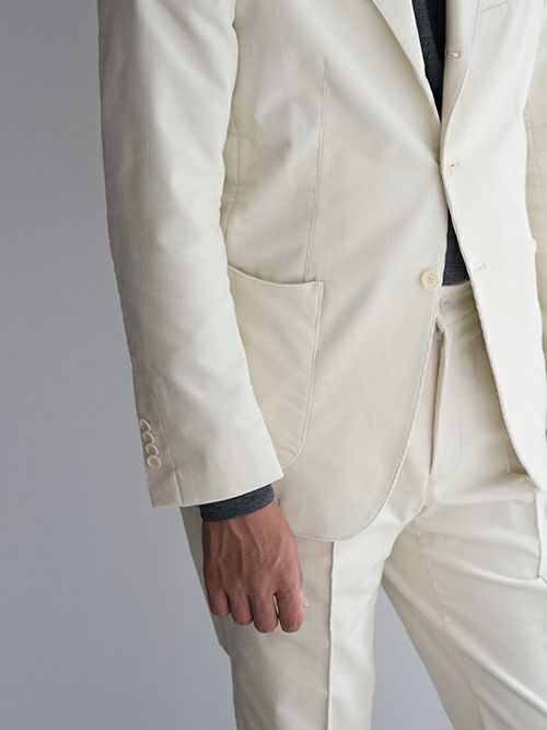 細畝のコーデュロイ生地を使用したカジュアルスーツ。