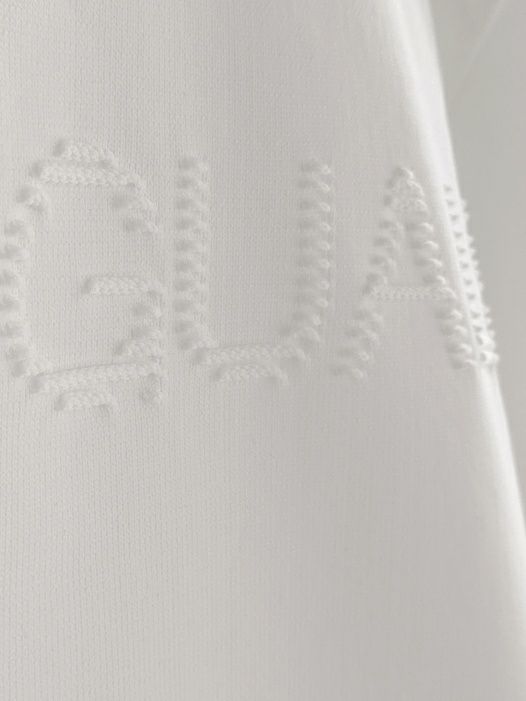 フロントに同色の立体的なロゴがさり気なくポイントになっています。さらりとしたニットの質感です。