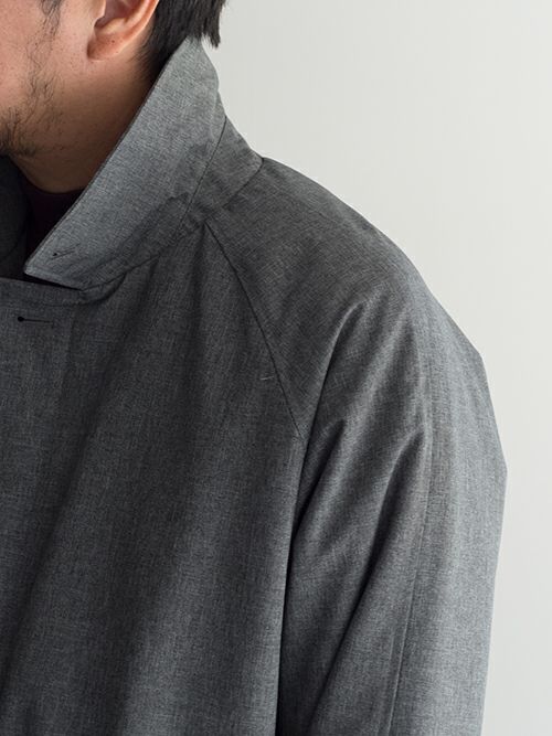 ウール混の中綿が入ったステンカラーコート。ラグランスリーブでシルエットも程よいゆとりがあるため、現在の空気感と快適な着心地を兼ね備えた一着です。