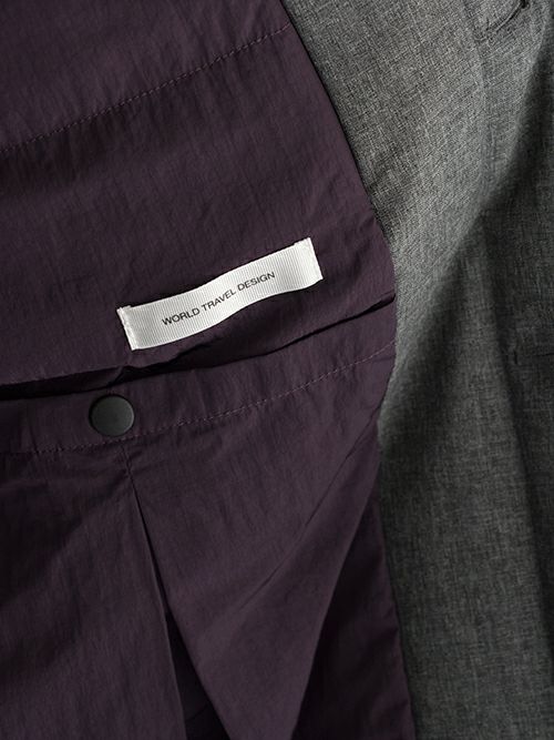 フロント釦は比翼になっており、スタイリッシュな見栄え。背面には大きなポケットを二つ配し、バックスタイルのデザイン性が高まっています。袖口やポケット部の釦はスナップ仕様で、機能面も優れた一着。
