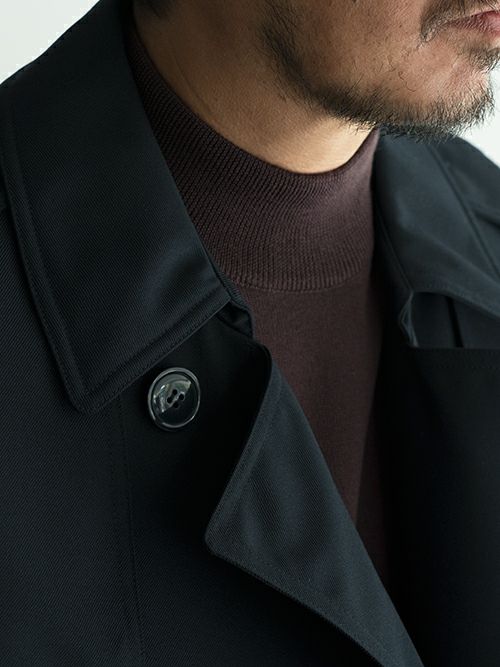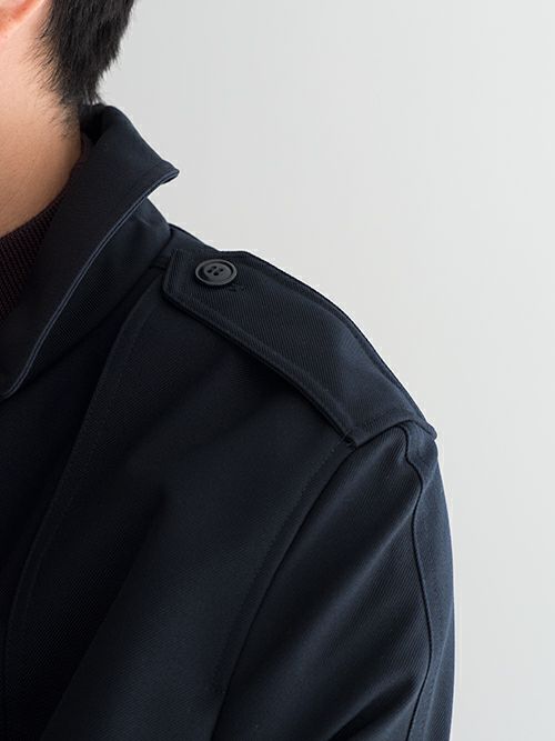 ウール混の中綿入りライナーが付いたトレンチコート。肩口はスプリットラグランになっており、シルエットも程よいゆとりがあるため、現在の空気感と快適な着心地を兼ね備えた一着です。