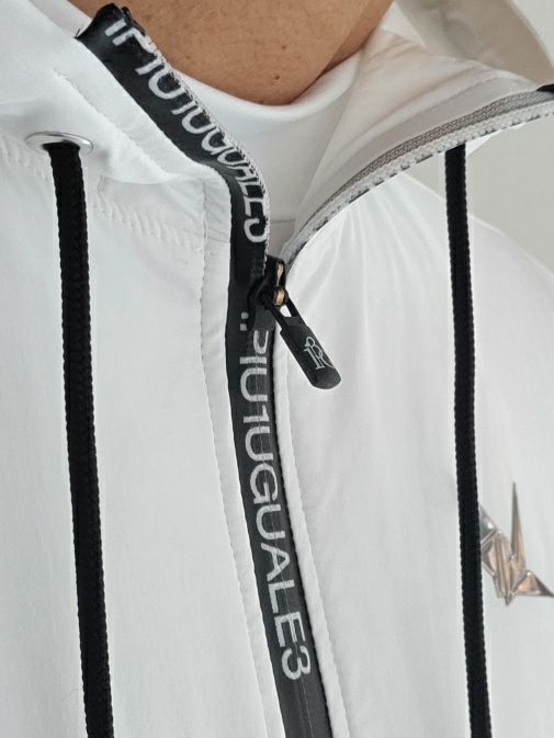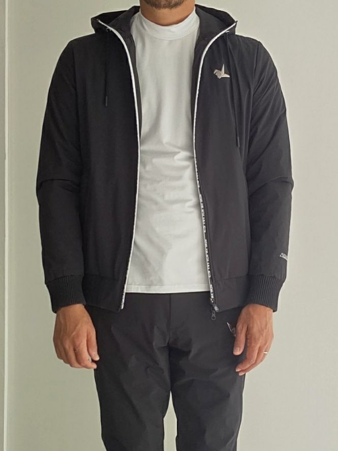 POLARTEC このファブリックは体を包み込むよう4方向にストレッチし、非常に通気性が良く汗をかいても皮膚をドライに保ち、軽くて暖かいのが特徴です。快適な着用感でセンタージップのロゴがポイントとなっています。同生地のパンツ