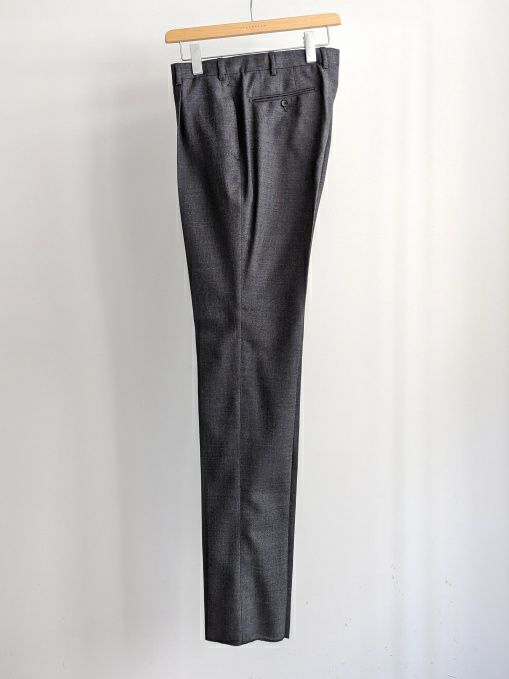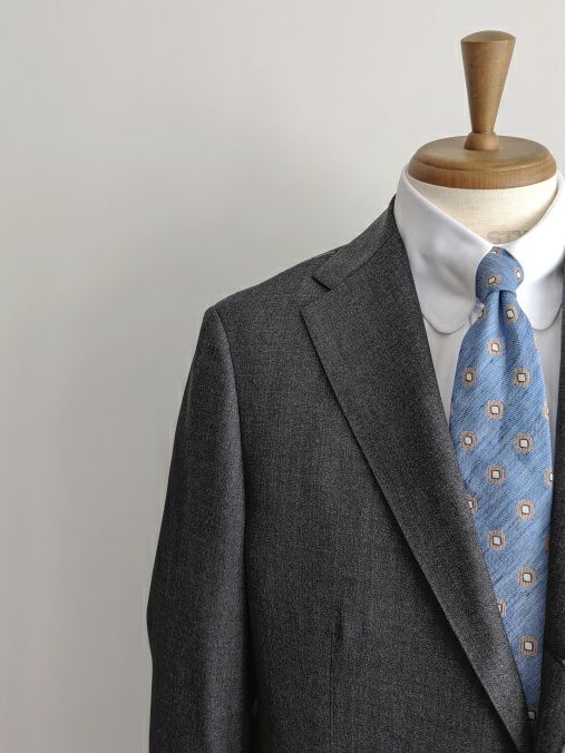 イタリア生地のVITALE BARBERIS CANONICO(ヴィターレバルバリスカノニコ)の生地を使用した、軽やかな着心地の春夏のスーツ。タイドアップや、インナーにニットと合わせるなど、幅広く着用いただけます。ジャケットはノッチドラペル、フラップポケットで3つボタンの段返り仕様。毛芯には本バス毛芯(馬の尾毛)を使用し、衿元から胸にかけてハリを与え立体的なシルエットをになります。毛芯の中でも最高峰の物を使用しております。