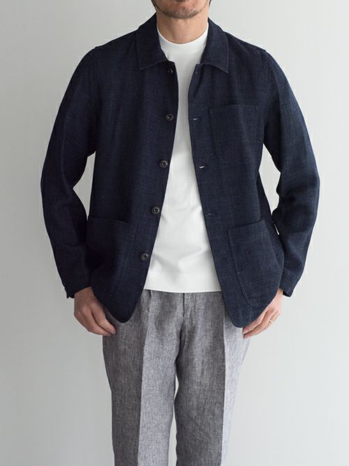 ウールリネン混のシャツジャケット。上質で軽やかな生地感が魅力的な一着です。