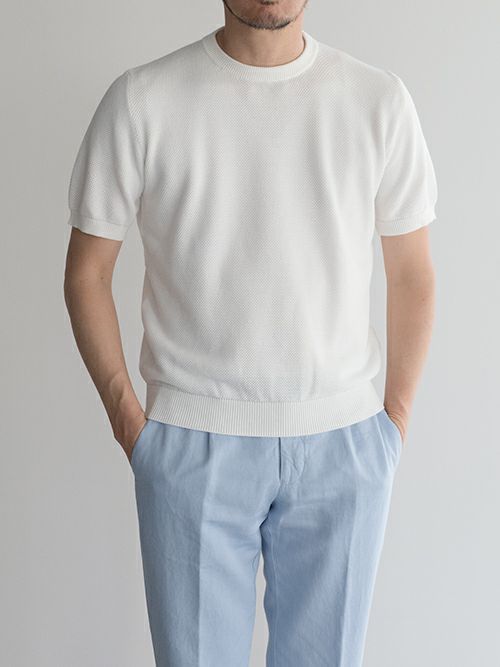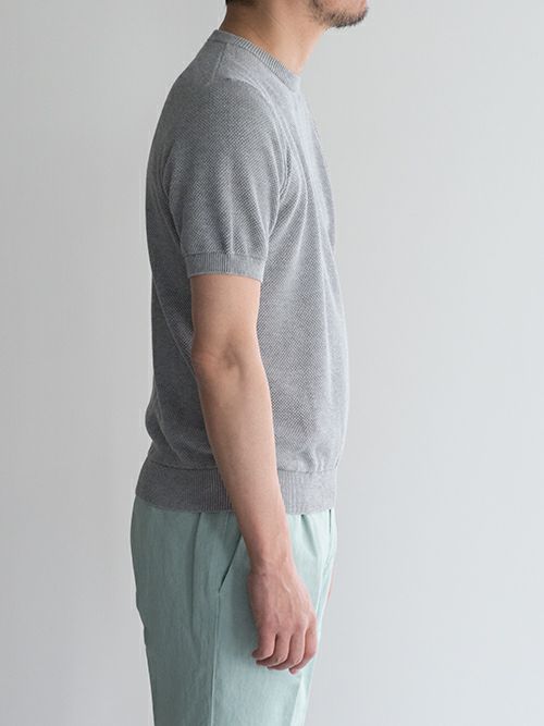 自然なリラックスシルエットのショートスリーブニット。カットソーの代わりに気軽に着ていただければ、カジュアル過ぎない大人のコーディネートを演出できます。