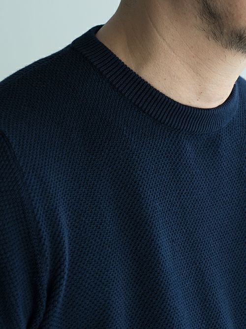 鹿の子編みで、見え方としては程よく立体的なボリュームが出るため、一枚での着用も存在感のある仕上がり。