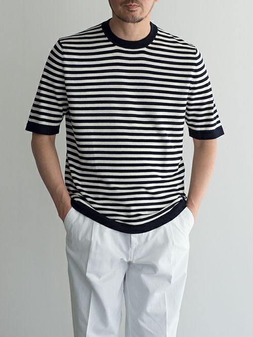 定番のボーダー柄も、カットソーではなくニットにする事で大人のカジュアルコーディネートを演出できます。
