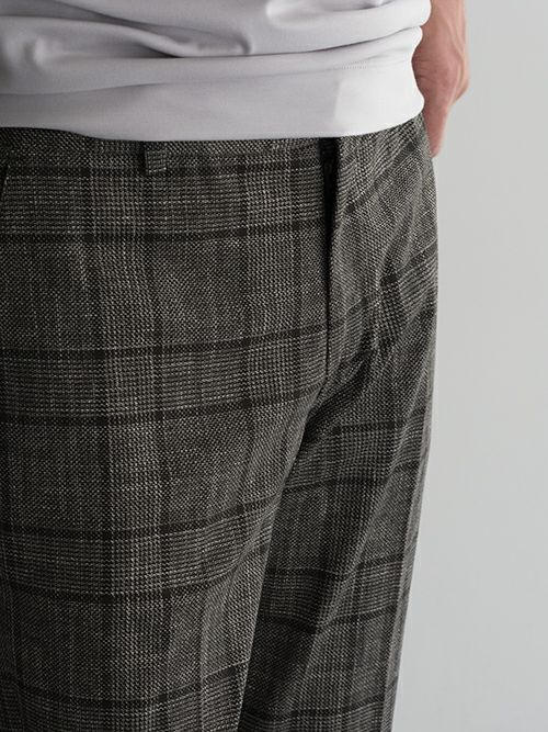 ノータックのすっきりとした腰回りで、膝下からはテーパードのかかるスマートなシルエットです。ストレッチが効いているので動きやすく、ストレスのない着用感も魅力的。