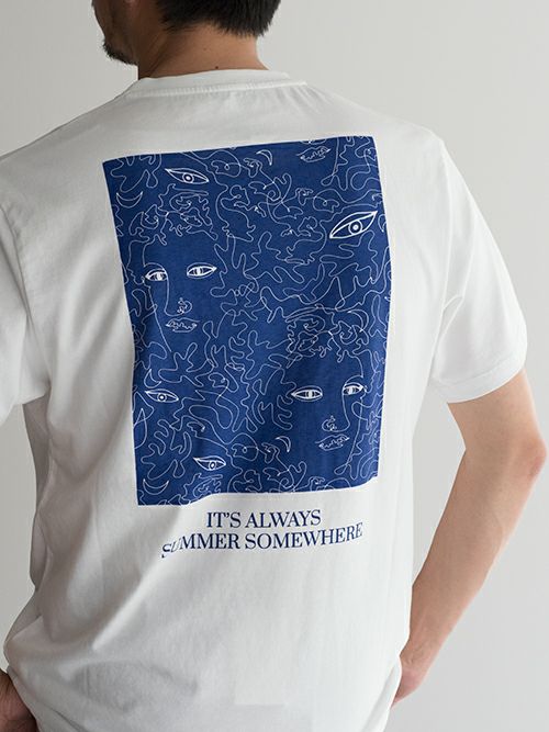 フロントにはブランドアイコンが刺繍で施され、程よいアクセントに。バックには一枚の絵画を見ているようなアーティスティックなプリントと、「IT'S ALWAYS SUMMER SOMEWHERE」の文字がバランス良く配置されており、いつでもどこかに夏を感じる事ができる一着。