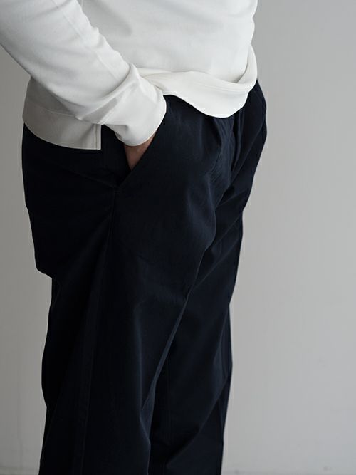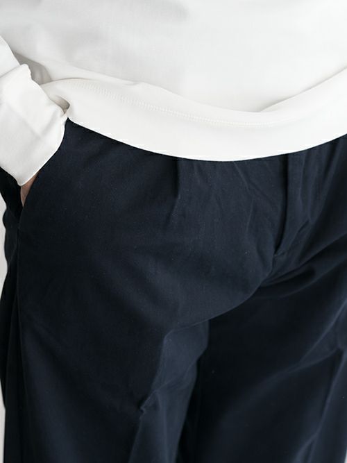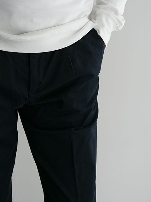 ワンタックでストレッチが効いており、すっきりした裾のシルエットにも関わらず窮屈さを感じずに着用いただけます。