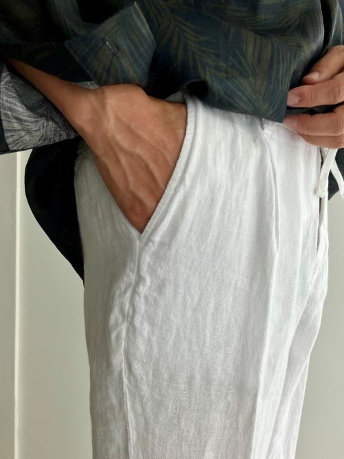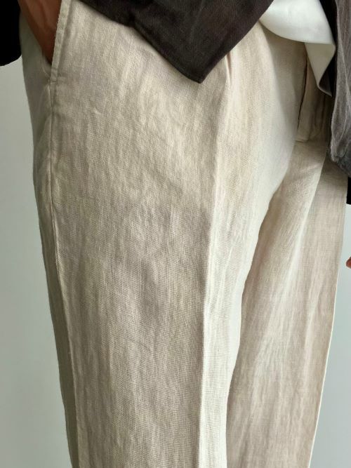 上品なシルエットが魅力のリネンパンツ