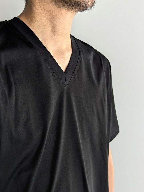 上品な艶感が魅力のVネックカットソー