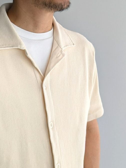 肌触りの良いコットン素材を使用したサーマルシャツ。表面に微細な凹凸感のある編地が、さりげない立体感と高級感を演出します。