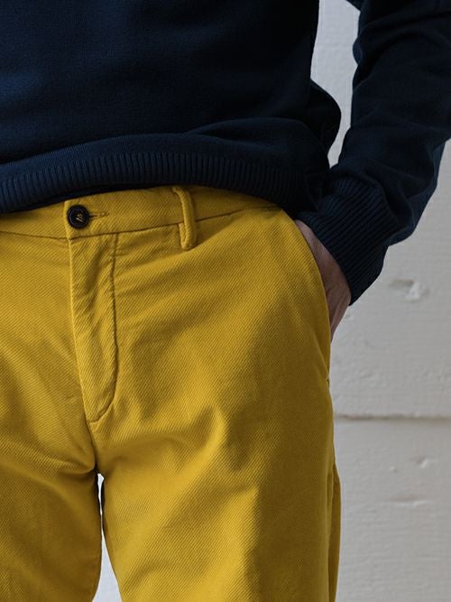 ソフトタッチなテンセル×コットン素材で、モールスキンのイエローが特徴的な一着です。