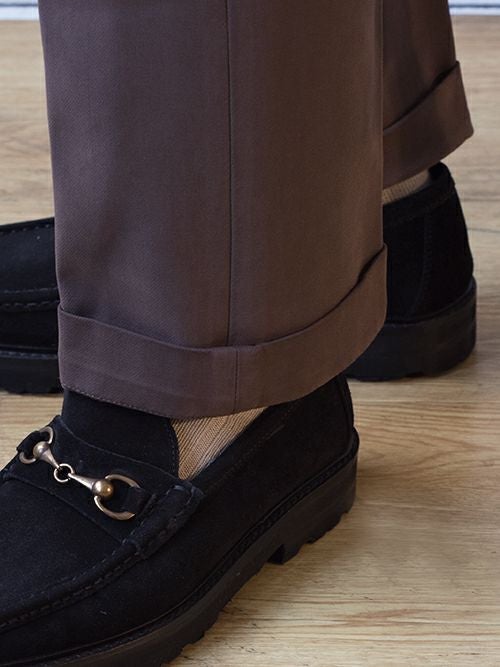 レーヨンストレッチ素材のブラウンカラー、シックで新しいフィッティング感です。