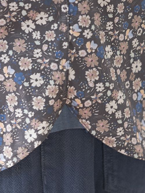 レギュラーフィット ブラックベースのフラワープリントシャツ、程よいフィット感です。