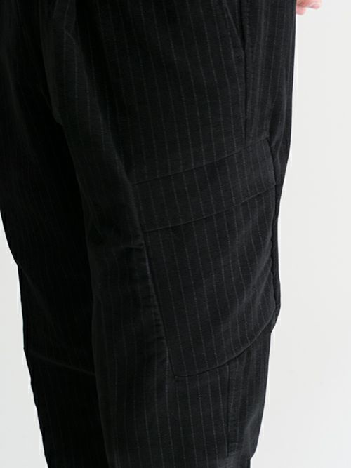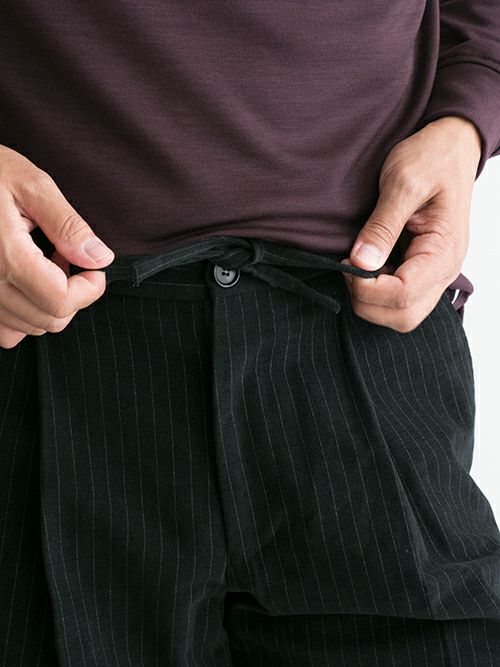 ウエストはドローコード仕様で、膝下はしっかりとテーパードを効かせたワンプリーツパンツです。サイドにポケットが付いたカーゴ仕様になっており、タイドアップからスポーティなジャケットスタイルまで、幅広く着用いただけます。