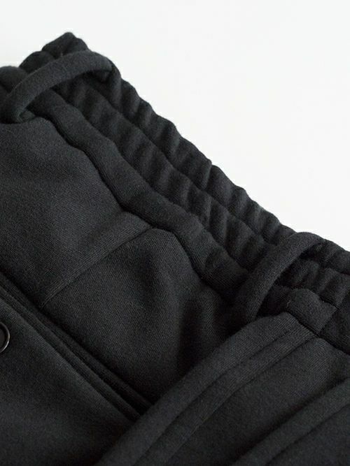 スウェット素材を使用したセットアップは数多くありますが、素材特性上、どうしても保形性に難があり、一日座り仕事をしていると肘や膝が抜けてしまってだらしなく見えてしまうなど、快適な素材であるが故のデメリットもありました。