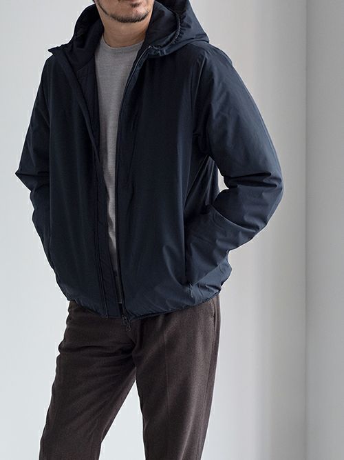 中綿は敢えて天然のダウンを使わずに、ダウンの保温性や、ダウン特有の機能性を可能にするウール混紡素材を使用しています。