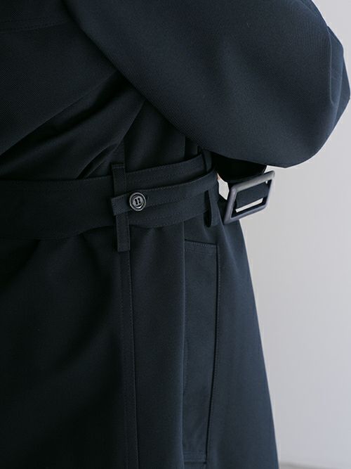 ウール混の中綿入りライナーが付いたトレンチコート。肩口はスプリットラグランになっており、シルエットも程よいゆとりがあるため、現在の空気感と快適な着心地を兼ね備えた一着です。