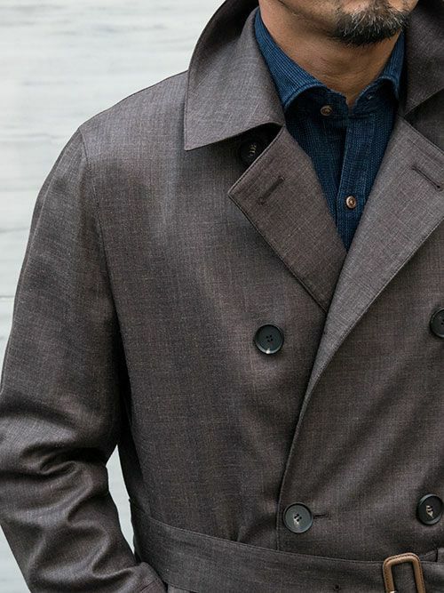 衿立ちを良くするために上衿のみやや厚みのある芯地を使用し、コシを出しました。これにより着用時の自然な衿立ちが実現します。