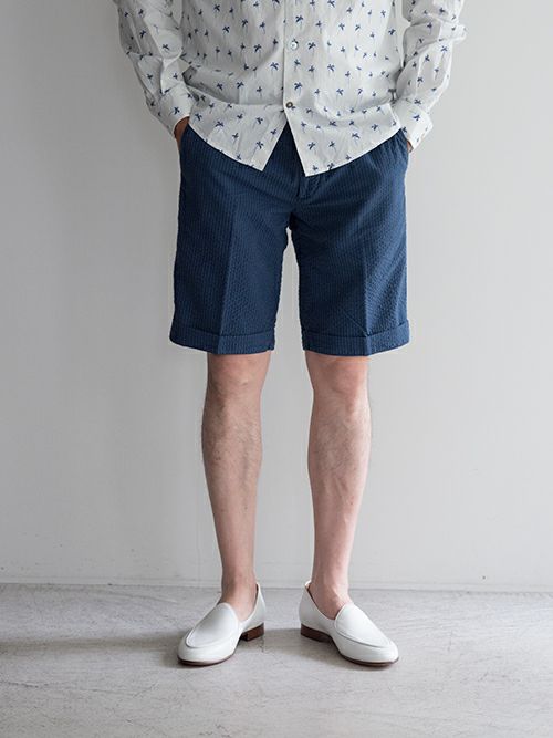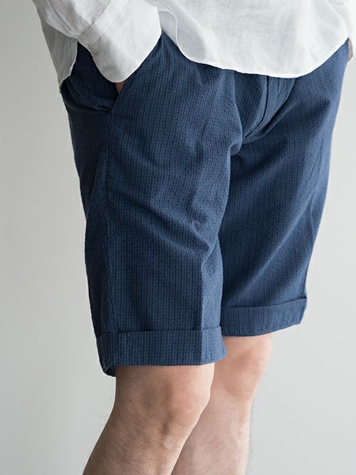 他の画像を見る 【OUTLET】【SALE】40WEFTフォーティーウェフト シアサッカー チェック柄ショートパンツ NAVY ¥ 22,000 のところ 価格 ¥ 15,400 税込 お気に入りに登録する