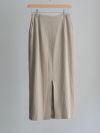 スッキリしたシルエットに深めのセンタースリットが特徴的。タイトではありますが伸縮性とスリットもあり足さばきも良いのでストレスフリーに着用いただけるタイトスカートです。イタリアPRATO産地にあるMANTECO社の糸を使用。ざっくり編まれた組織でコットン・ポリエステルを使用する事によりしわになりにくくイージーケアしやすいです。