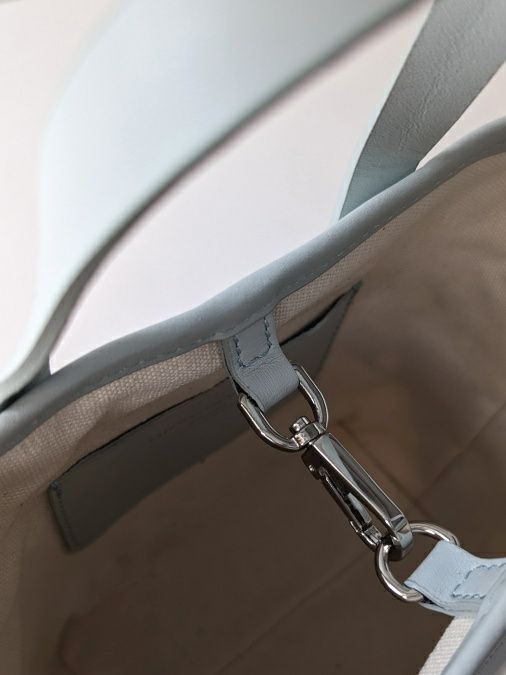 ペールトーンのミントカラーが上品なミニバッグ。上質なカーフレザーを使用しており、洗練された大人な印象になっています。着脱可能なレザーストラップで、コーディネートに合わせて持てるのも嬉しいポイント。内側には小ぶりなポケットもあり、利便性にも優れています。軽やかで涼しげな、春夏にぴったりのバッグです。