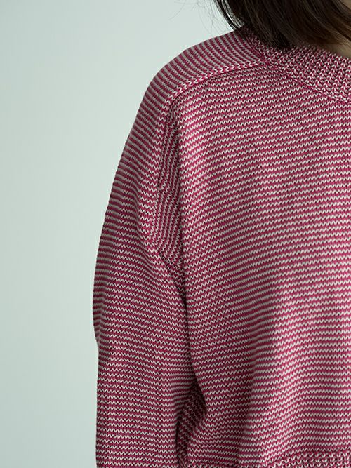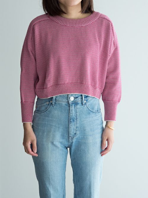 広く取った身幅とショート丈が、トレンド感を醸し出すコットンニット。アームは比較的すっきりとしており、全体のバランスをミニマムに仕上げています。