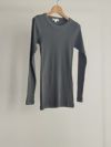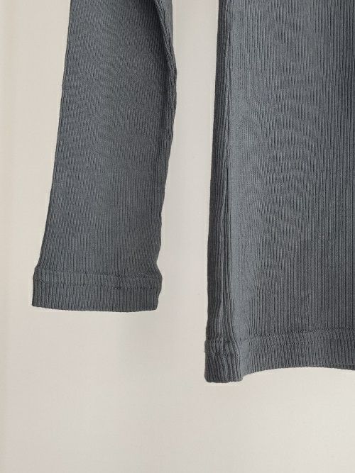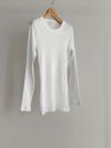 コットン100%のリブタクルーネックカットソー。全体的にインナーようにタイトなサイジングにしてありますが、肌触りも柔らかく程よく馴染んでくれます。着丈は長めになっていますのでボトムにインして頂くとスッキリと着用頂けます。ネック部分は開きすぎず程よいネックの開き感です。ホワイトは多少の透け感がございます。シャツワンピースやニットカーディガンのインナーに活躍するアイテムです。
