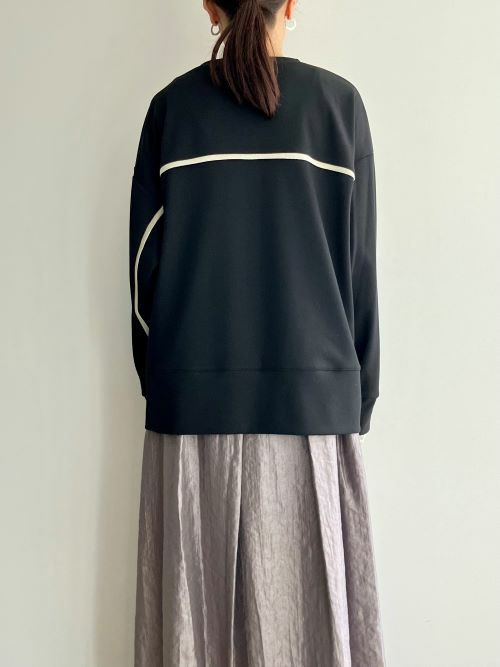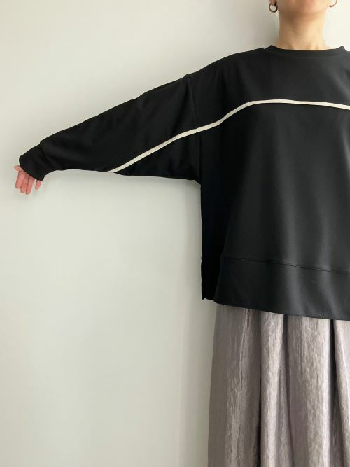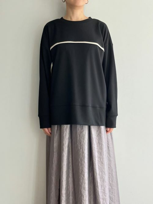 程よい肉感の柔らかいポンチ素材のカットソー。ラメ生地のラインを入れることで、デザイン性と引き締め効果が生まれています。