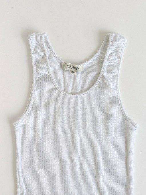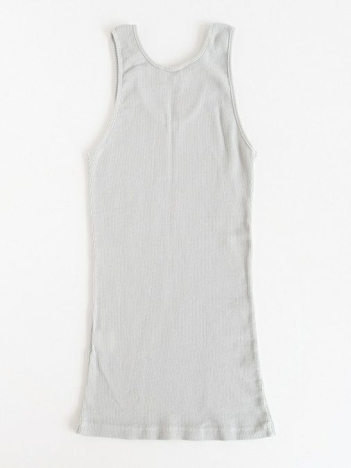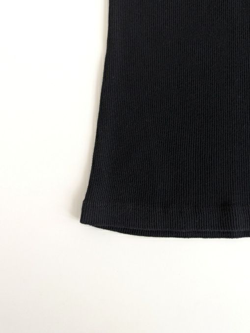 コットン100%のリブタンクトップ。全体的にタイトなサイジングにしてありますが、肌触りも柔らかく程よく馴染んでくれます。着丈は長めになっています。ふちも同生地使用でシャツワンピースやニットカーディガンのインナーに活躍するアイテムです。