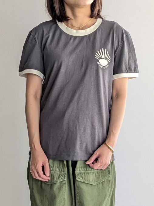 ネック部分と袖部分の縁取りがある70年代のレトロな雰囲気があるTシャツ。シルエットは程よいサイジングで1枚でも袖などのディティールにも細かなデザインがあり存在感を放ってくれます。勿論ジャケットなどの羽織のインにしてもらってもシックで個性が光る1枚となります。