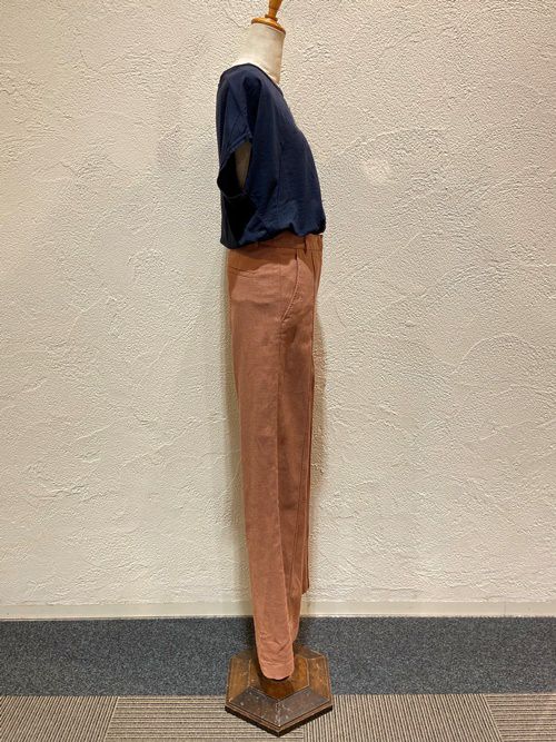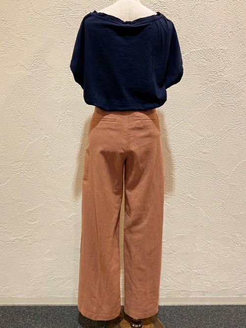 ふわっとした生地感が魅力的なコットンリネン生地のパンツ。初めから柔らかいので履き心地抜群です。アウトリンキングに施したクリースラインで上品な印象に着用でき、アイテム次第でカジュアルにも綺麗めにも合わせて頂けるので、スタイリングの幅がぐっとひろがるパンツです。